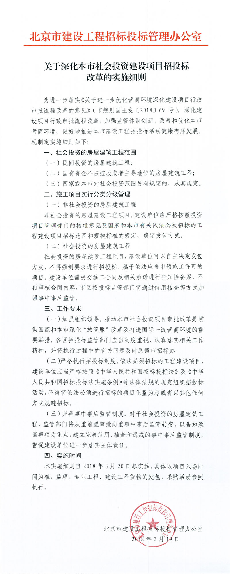 关于深化本市社会投资建设项目招投标改革的实施细则