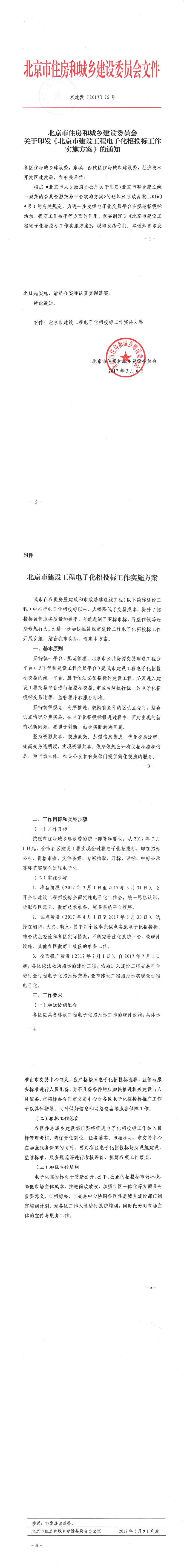 北京市住房和城乡建设委员会关于印发《北京市建设工程电子化招投标工作实施方案》的通知
