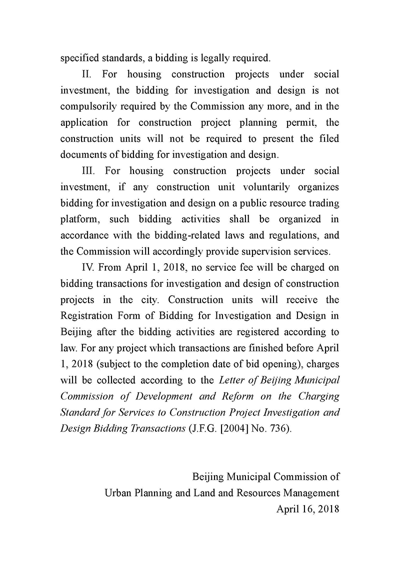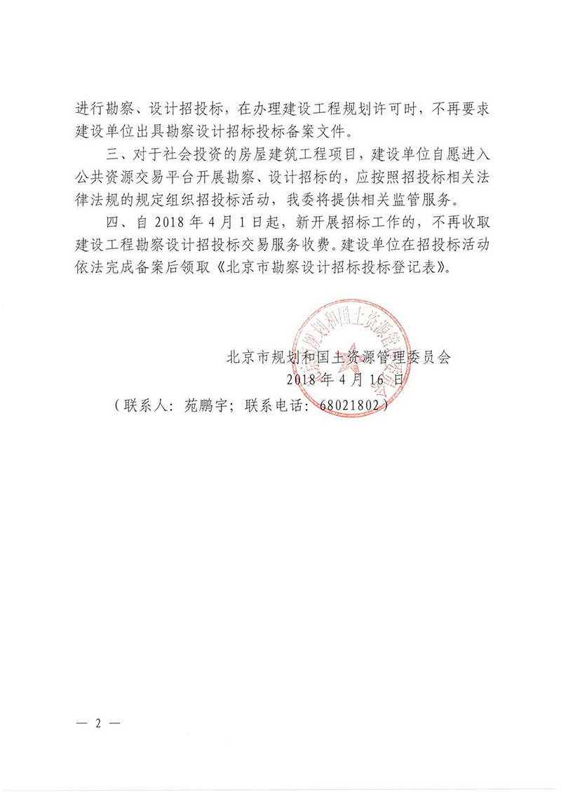 四、自2018年4月1日起,新开展招标工作的,不再收取建设工程勘察设计招投标交易服务收费。建设单位在招投标活动依法完成备案后领取《北京市勘察设计招标投标登记表》。