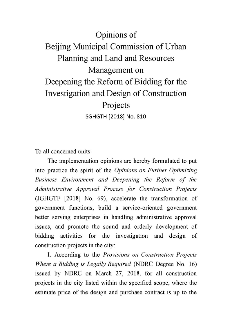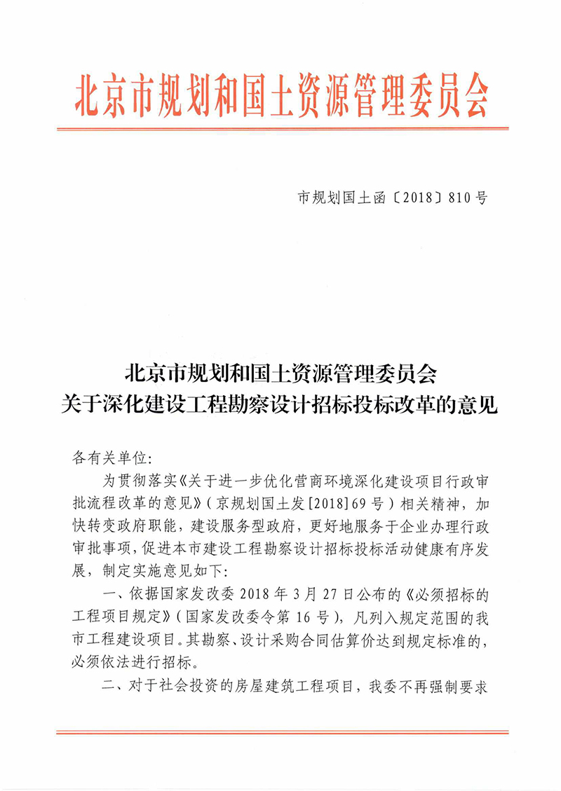 | 北京市规划和国土资源管理委员会关于深化建设工程勘察设计招标投标改革的意见 | |||