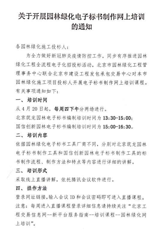 关于开展园林绿化电子标书制作网上培训的通知