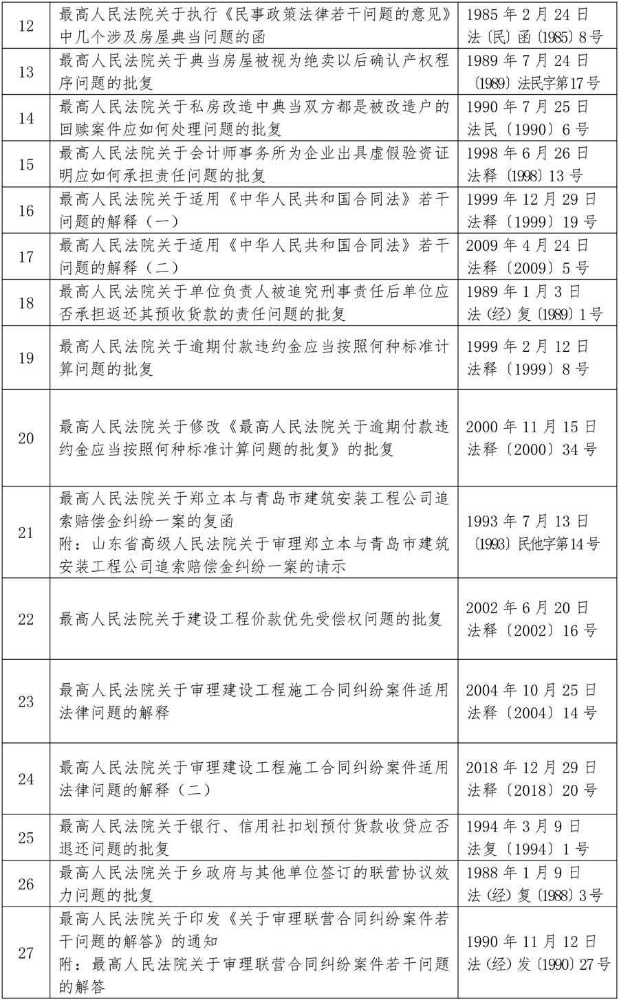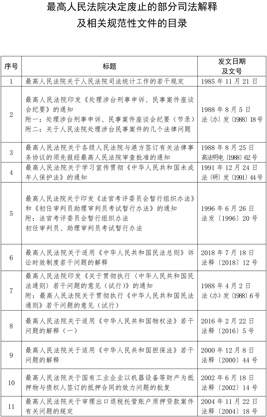 《最高人民法院关于废止部分司法解释及相关规范性文件的决定》已于2020年12月23日由最高人民法院审判委员会第1823次会议通过,现予公布,自2021年1月1日起施行。