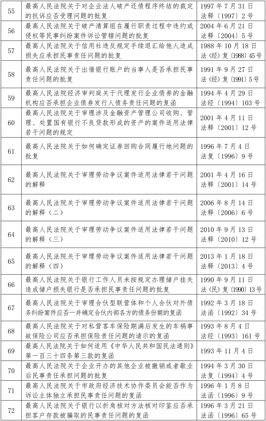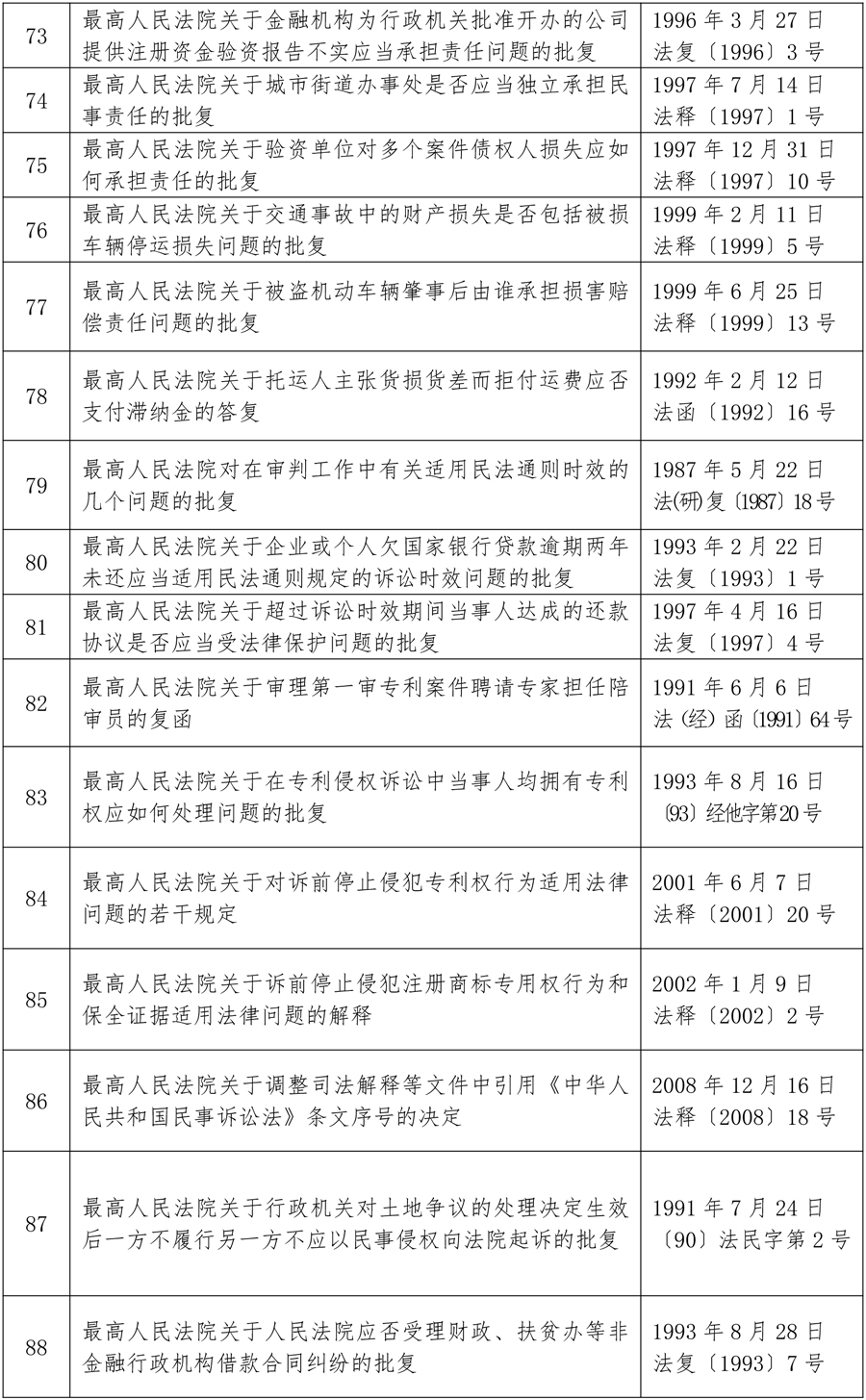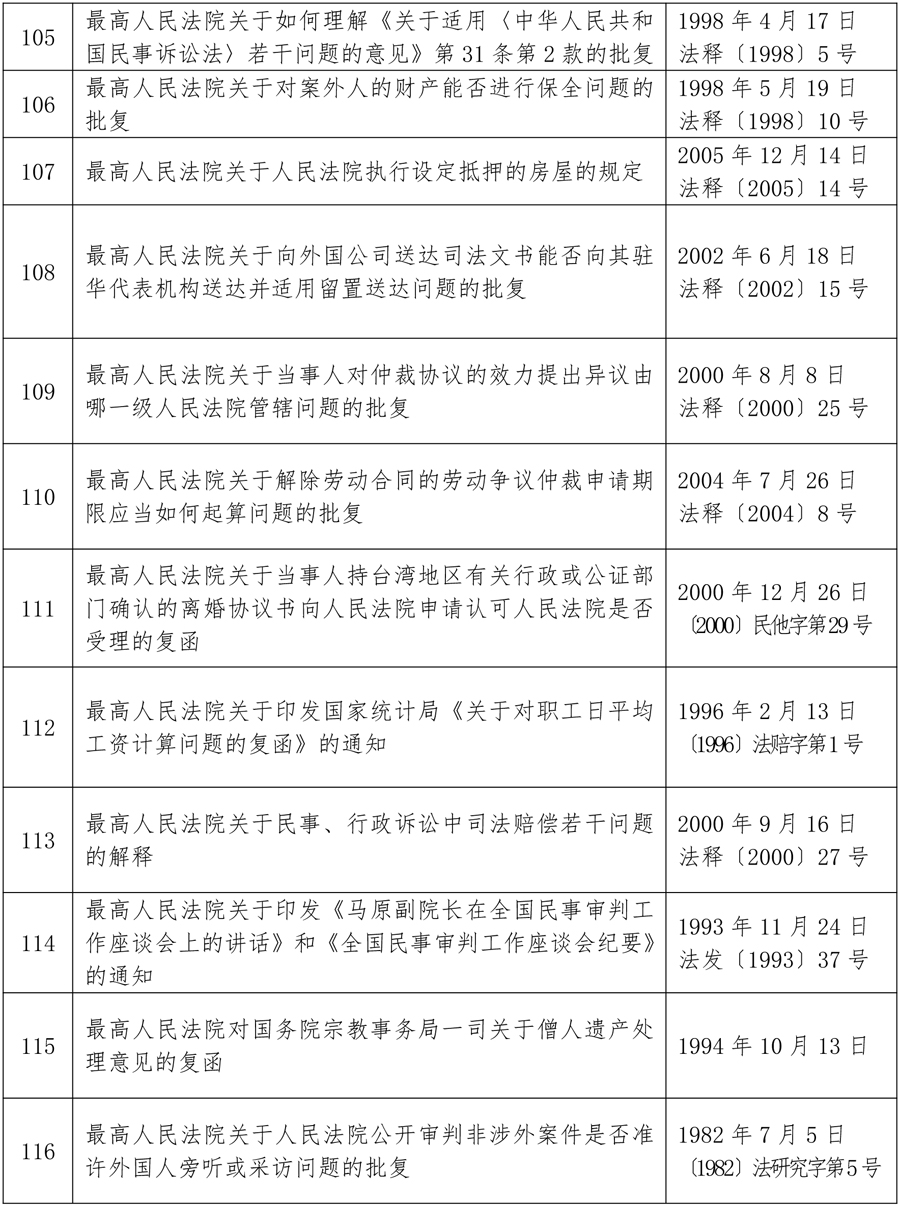 为切实实施民法典,保证国家法律统一正确适用,根据《中华人民共和国民法典》等法律规定,结合审判实际,现决定废止《最高人民法院关于适用〈中华人民共和国民法总则〉诉讼时效制度若干问题的解释》等116件司法解释及相关规范性文件(目录附后)。