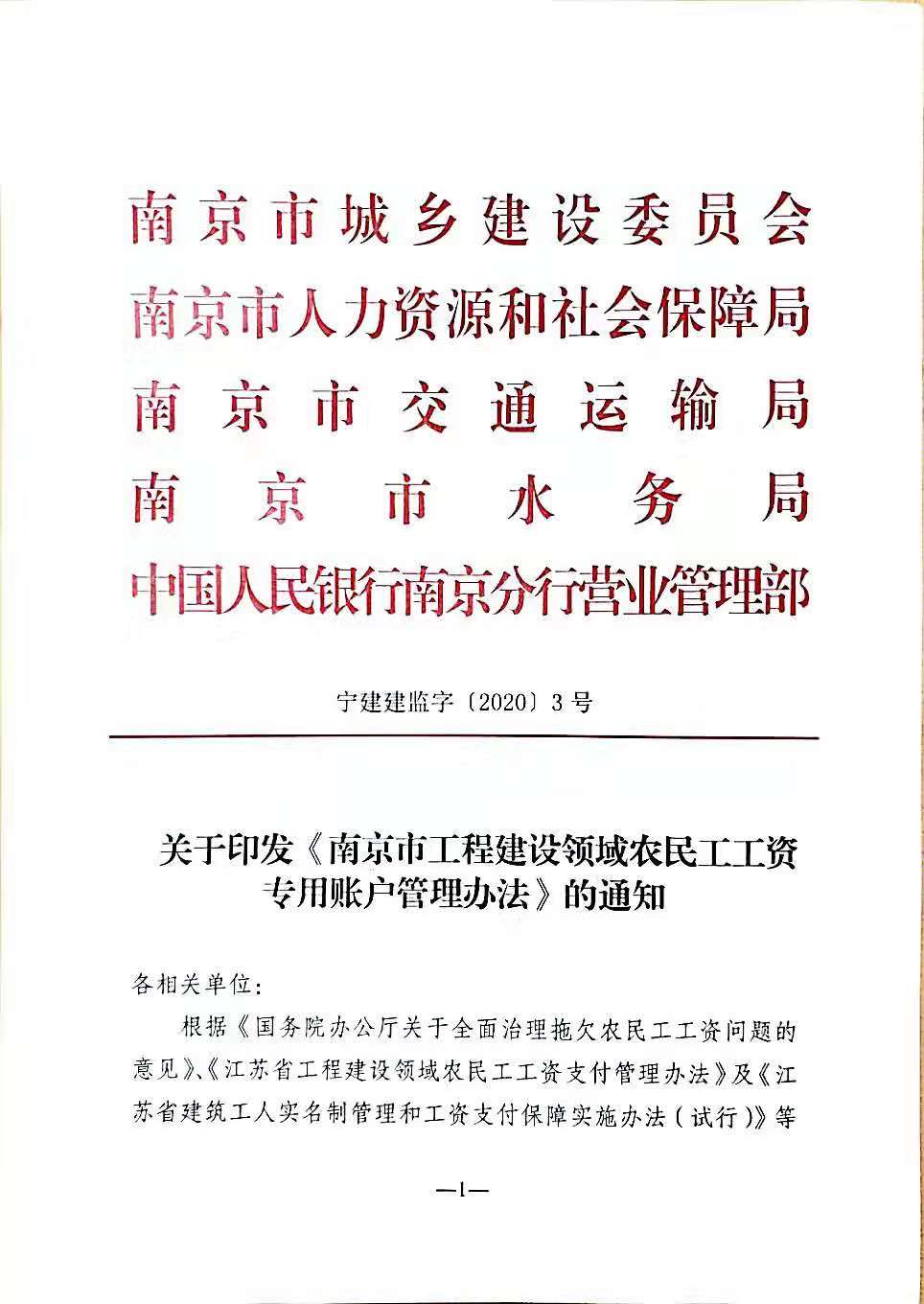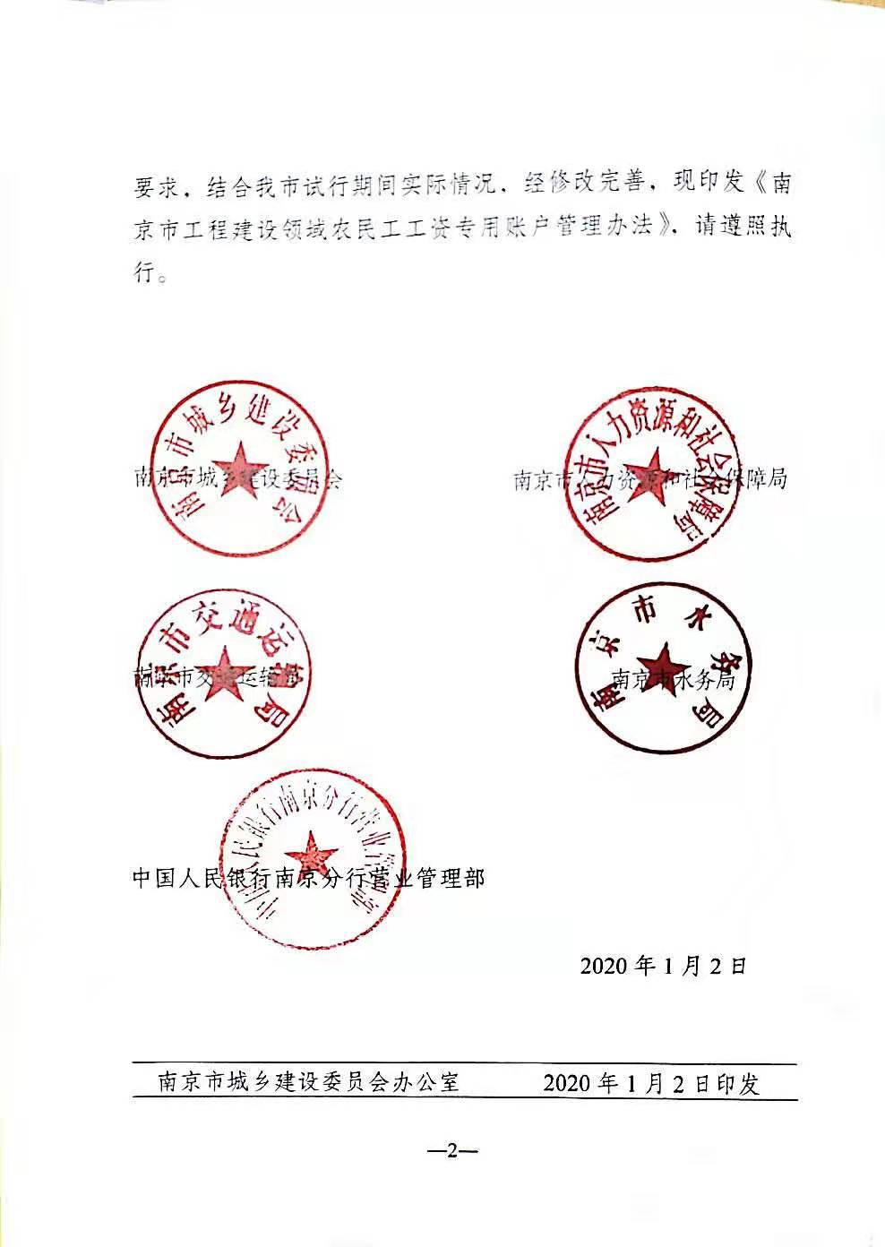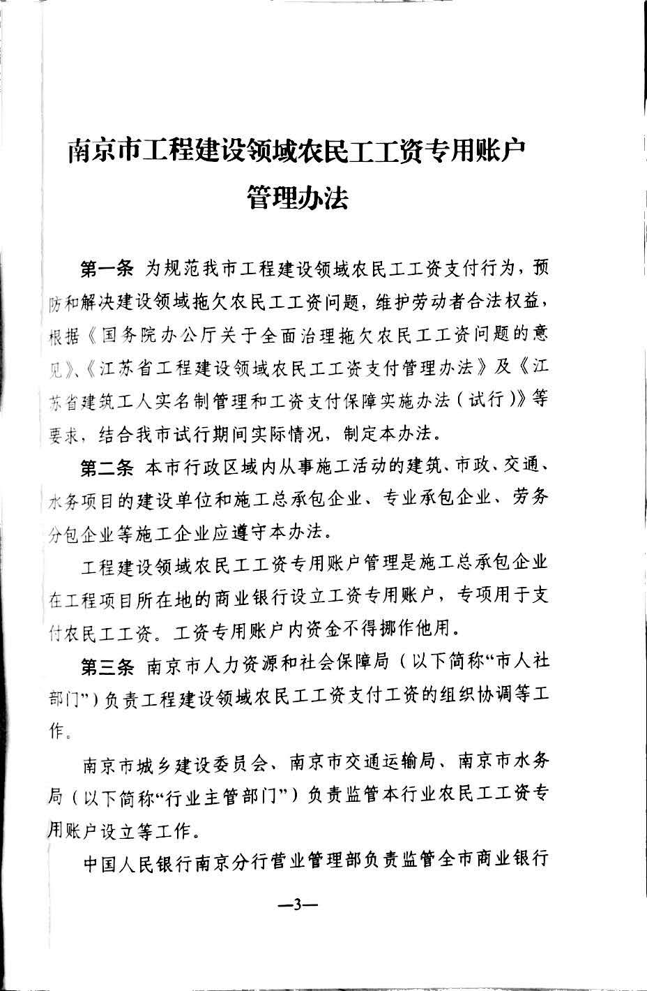 关于印发《南京市工程建设领域农民工工资专用账户管理办法》的通知