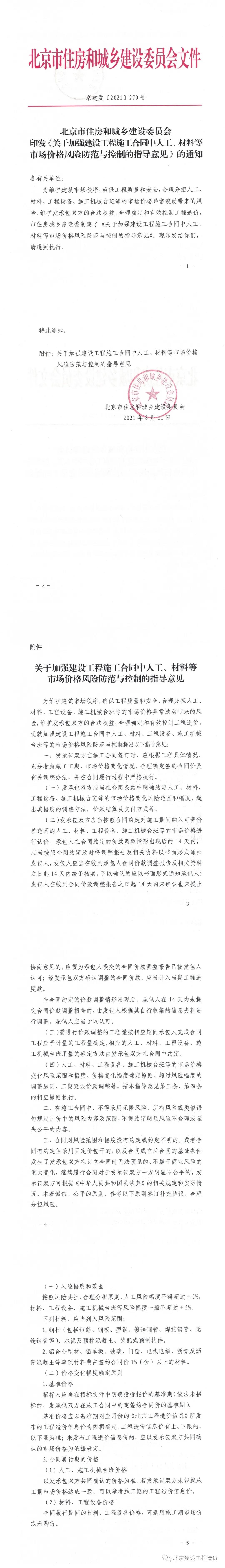 北京市住房和城乡建设委员会印发《关于加强建设工程施工合同中人工、材料等市场价格风险防范与控制的指导意见》的通知(PDF版本)