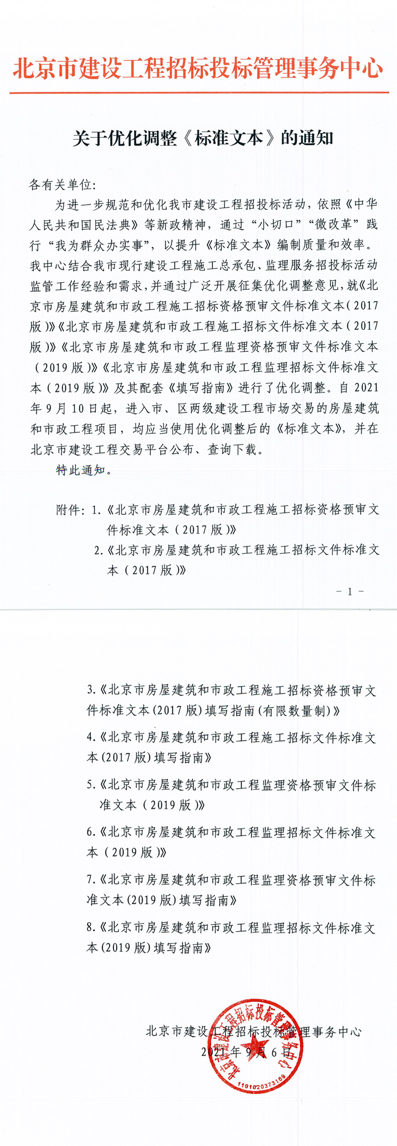 | 北京市建设工程招标投标食理事务中心关于优化调整《标准文本》的通知 | |||