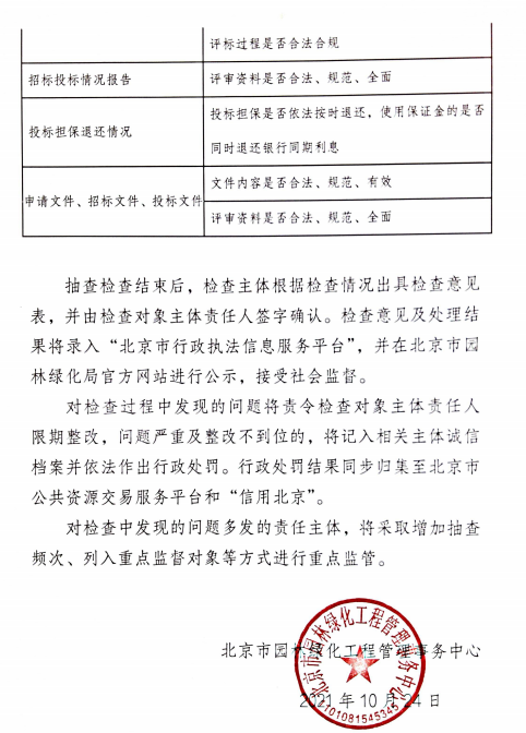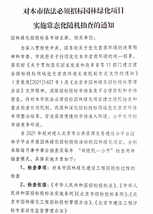 对本市依法必须招标园林绿化项目实施常态化随机抽查的通知