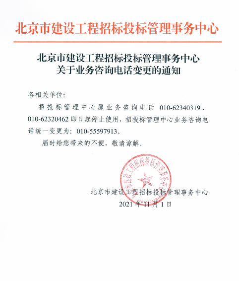 北京市建设工程招标投标管理事务中心关于业务咨询电话变更的通知