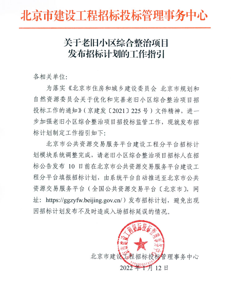 关于老旧小区综合整治项目发布招标计划的工作指引