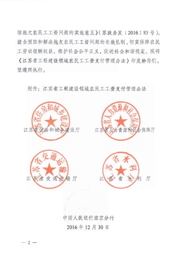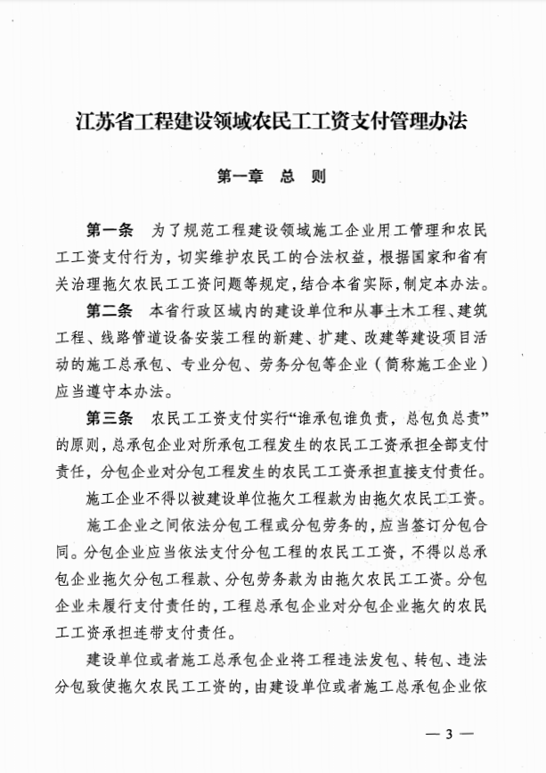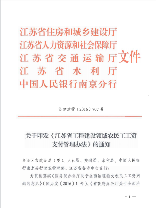 江苏省工程建设领域民工工资支付管理办法