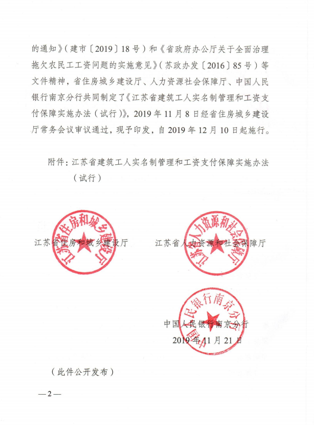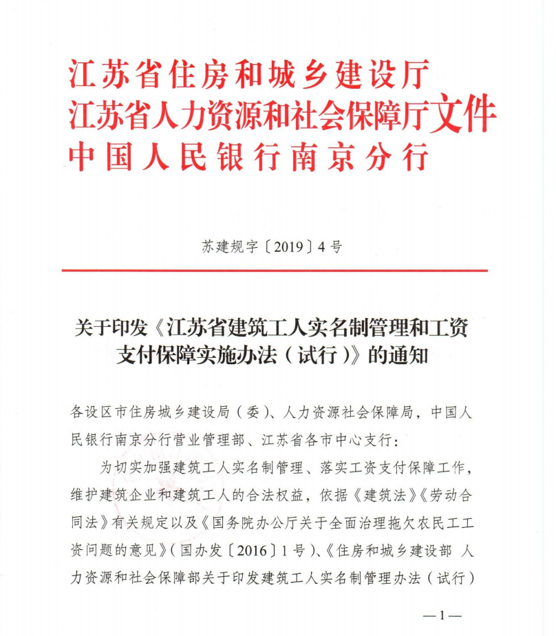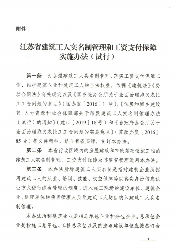 关于印发《江苏省建筑工人实名制管理和工资支付保障实施办法(试行)》的通知