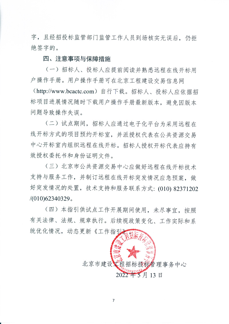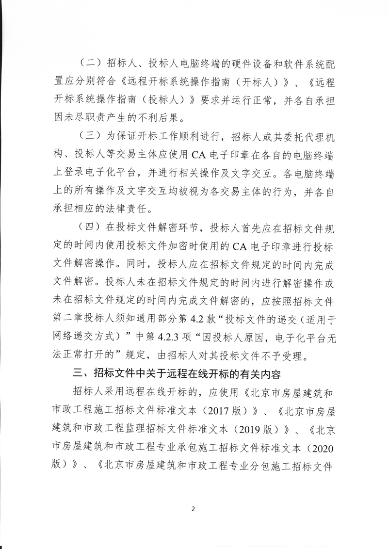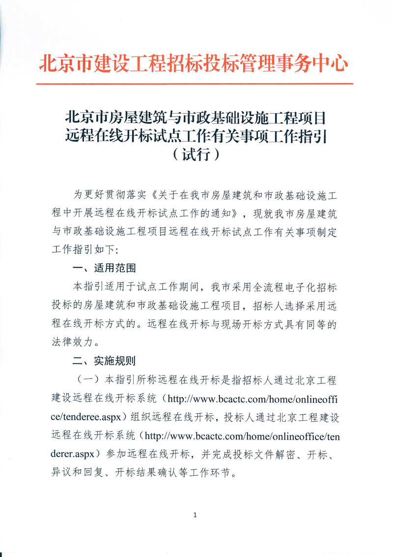 北京市房屋建筑与市政基础设施工程项目远程在线开标试点工作有关事项工作指引(试运)