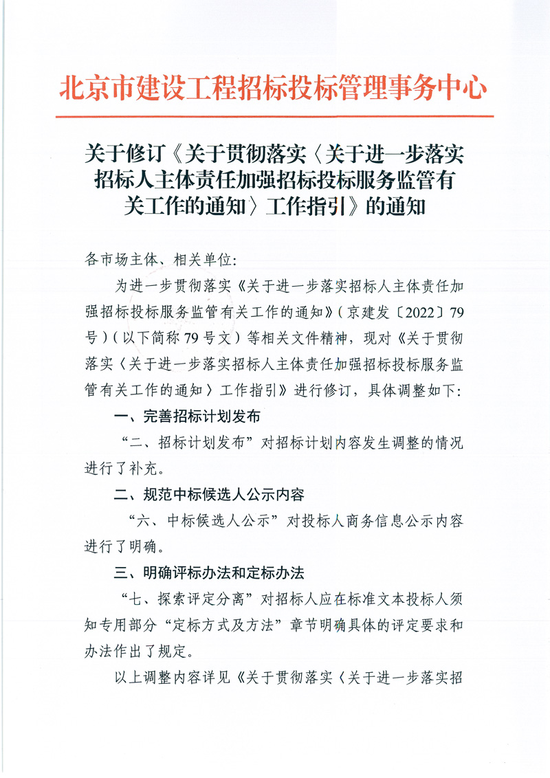 关于修订《关于贯彻落实<关于进一步落实招标人主体责任加强招标投标服务监管有关工作的通知>工作指引》的通知