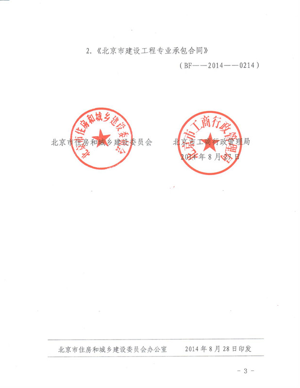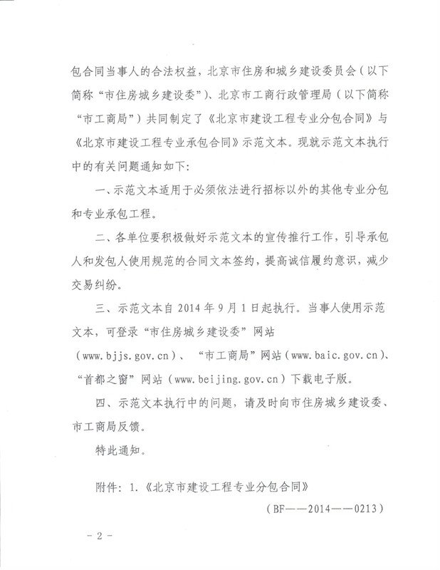 2.《北京市建设工程专业承包合同》(BF-2014-0214)