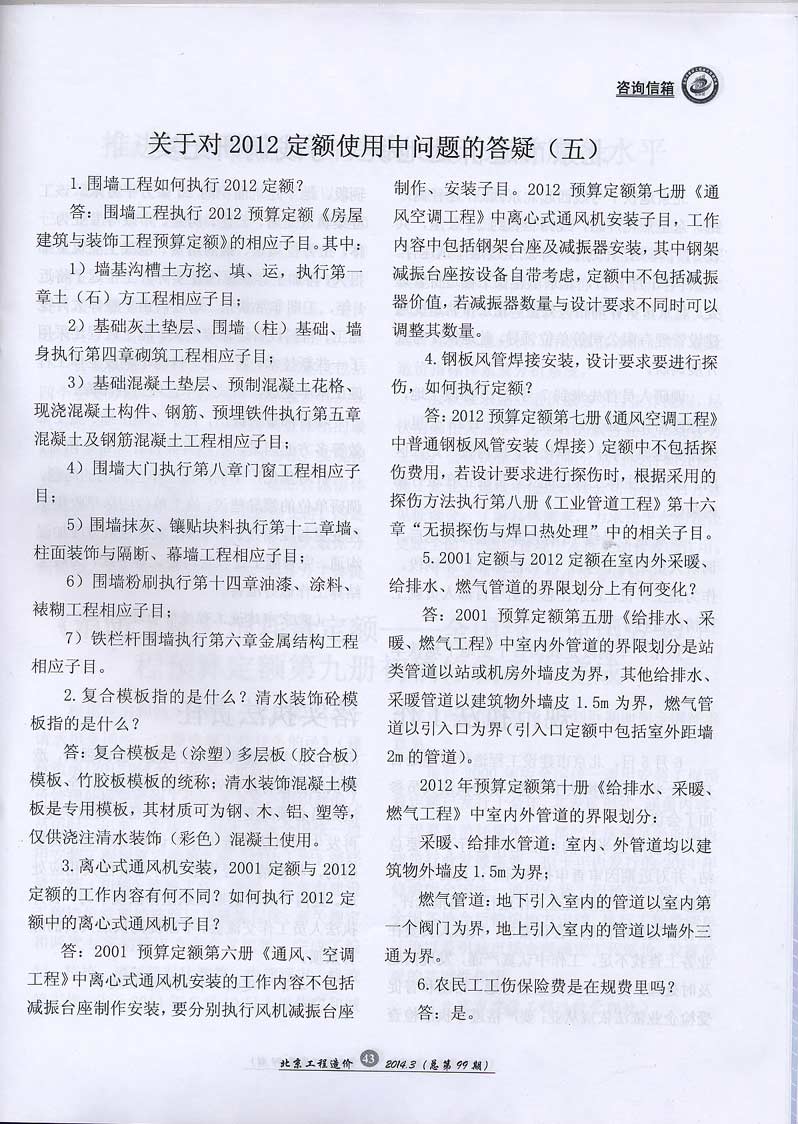 关于对2012定额使用中问题的答疑(五)