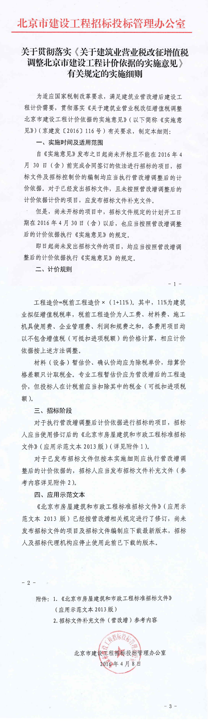 关于贯彻落实《关于建筑业营业税改征增值税调整北京市建设工程计价依据的实施意见》有关规定的实施细则