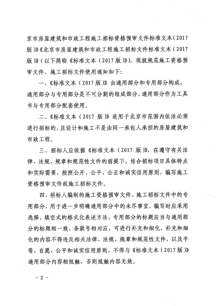| 关于发布《北京市房屋建筑和市政工程施工招标资格预审文件标准文件(2017版)》《北京市房屋建筑和市政工程施工招标文件标准文本(2017版)》的通知 | |||