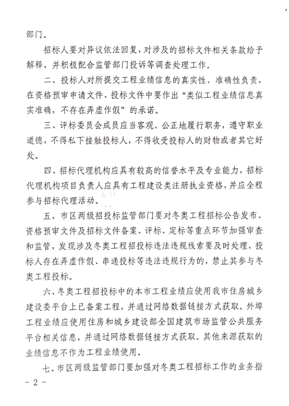 北京市住房和城乡建设委员会关于加强冬奥工程招投标管理的通知