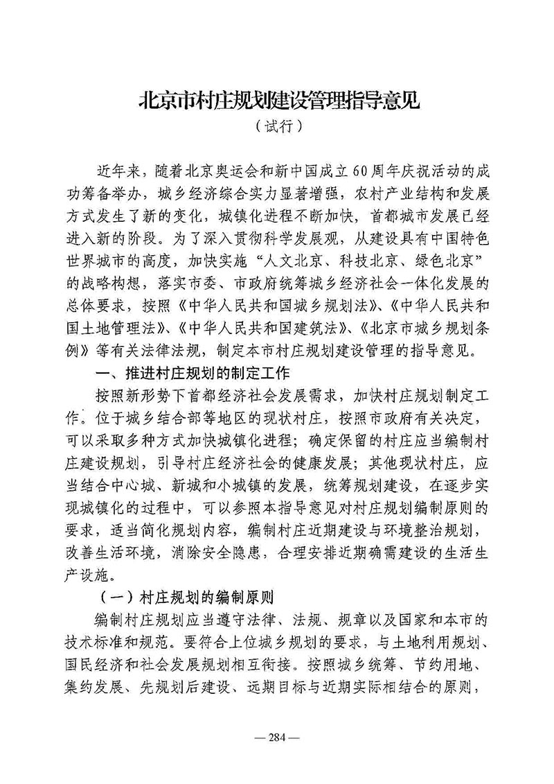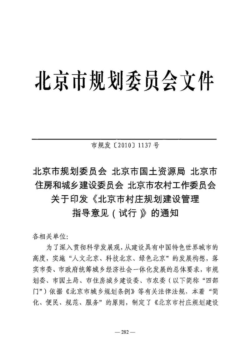关于印发《北京市村庄规划建设管理指导意见(试行)》的通知